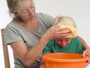 - Нужно правильно уложить ребенка. Запрещено выбирать положение лежа на спине, так он может захлебнуться. Лучшее положение – лежа на боку, голова при этом должна быть приподнята примерно на 30 градусов. При продолжении тошноты, важно следить за ребенком, чтобы он не запрокидывал голову.